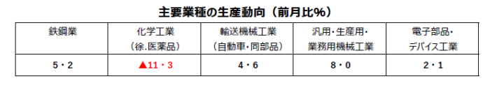 輸送機械工業(自動車・同部品)、汎用・生産用・業務用機械工業、化学工業(徐.医薬品)などが低下↓